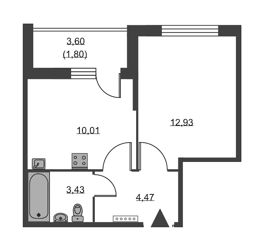 - Площадь кухни10,01 м2