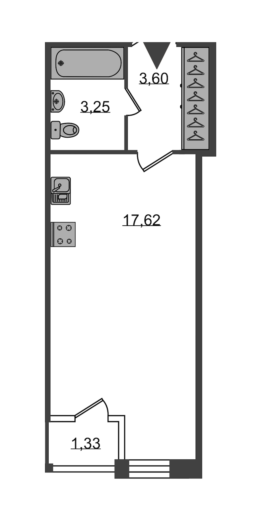 - Площадь24,7 м2