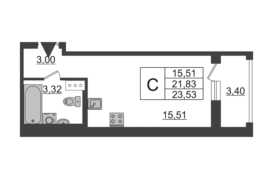 Квартира-студия на 12-ом этаже 24,7 кв.м