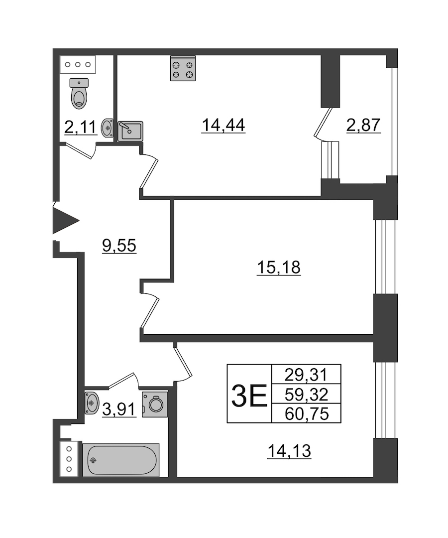 - Площадь61,9 м2