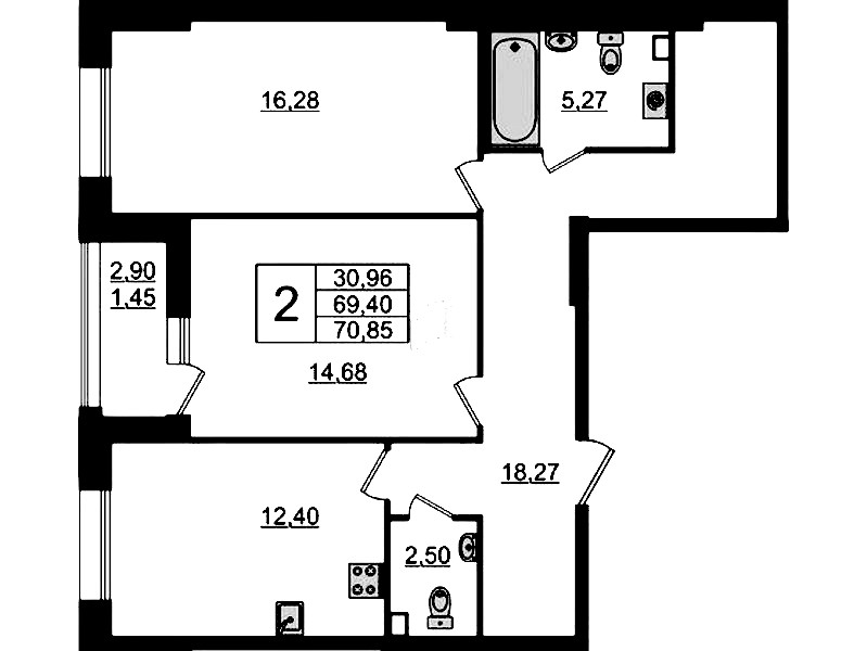 - Площадь70,85 м2