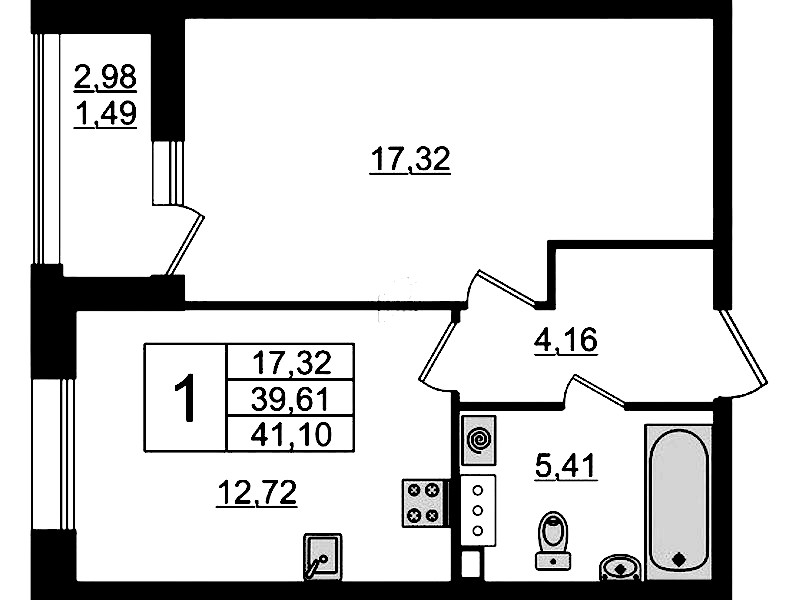 - Площадь41,1 м2