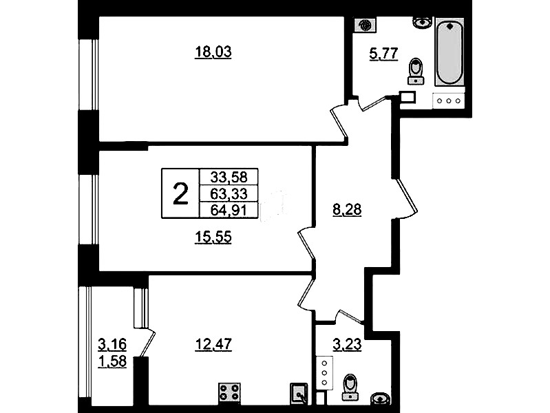 - Площадь64,91 м2