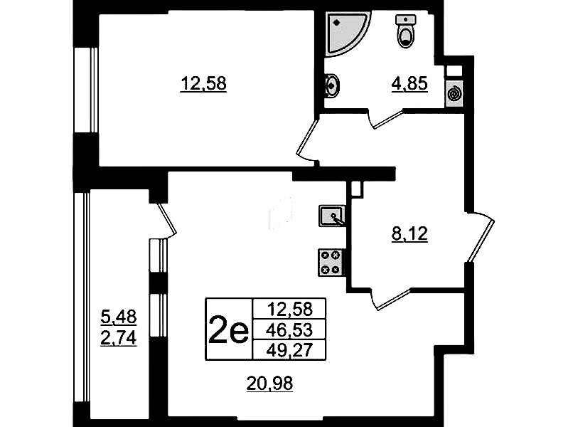 Однокомнатная квартира на 1-ом этаже 49,27 кв.м