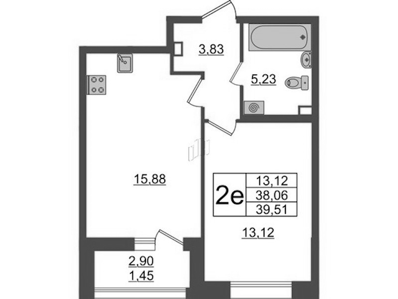 • Площадь39,51 м2