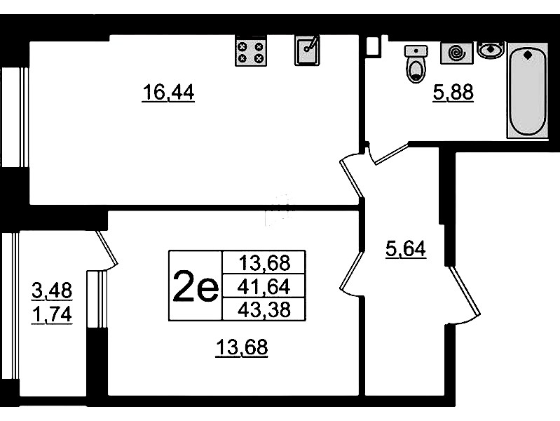 - Площадь43,38 м2