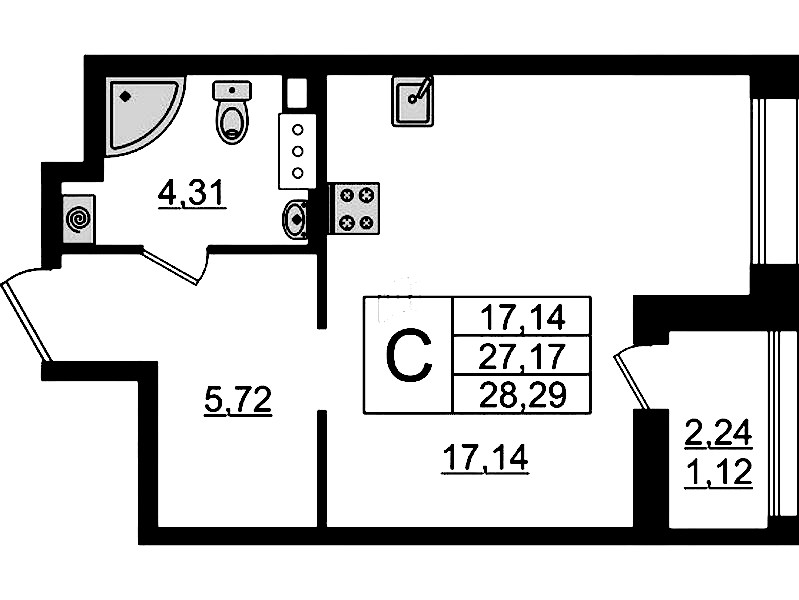 • Площадь28,29 м2