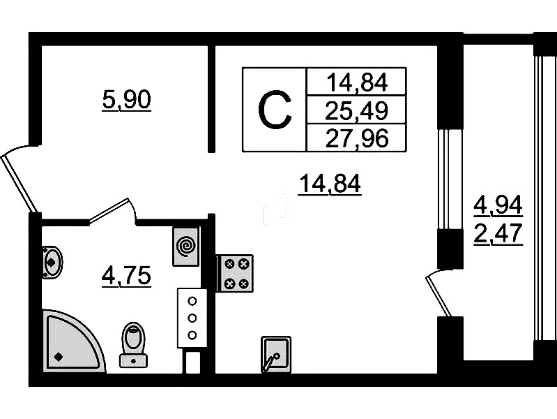 - Площадь27,88 м2
