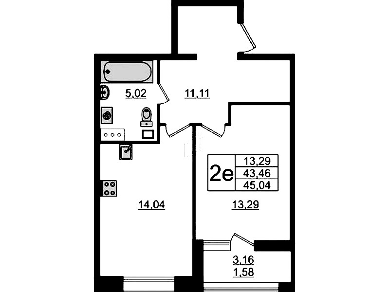 - Площадь45,04 м2