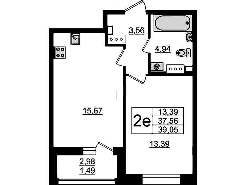 - Площадь39,05 м2