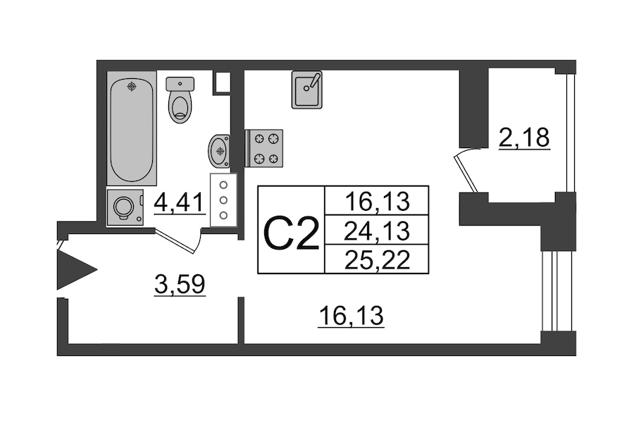 - Площадь26,3 м2