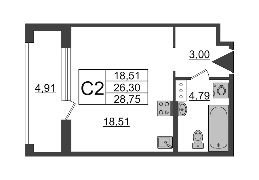 - Площадь29,7 м2