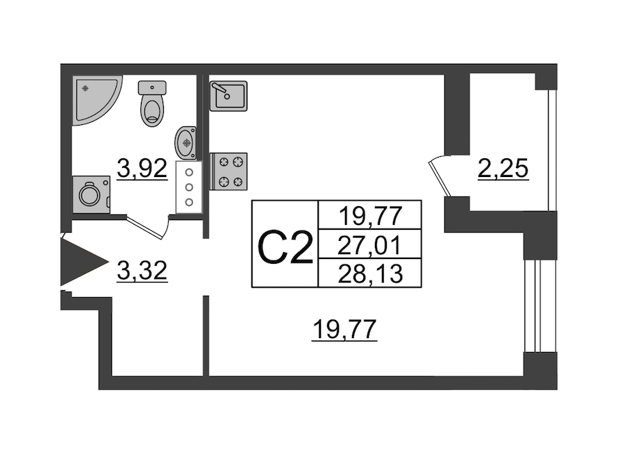 Квартира-студия на 10-ом этаже 29,1 кв.м