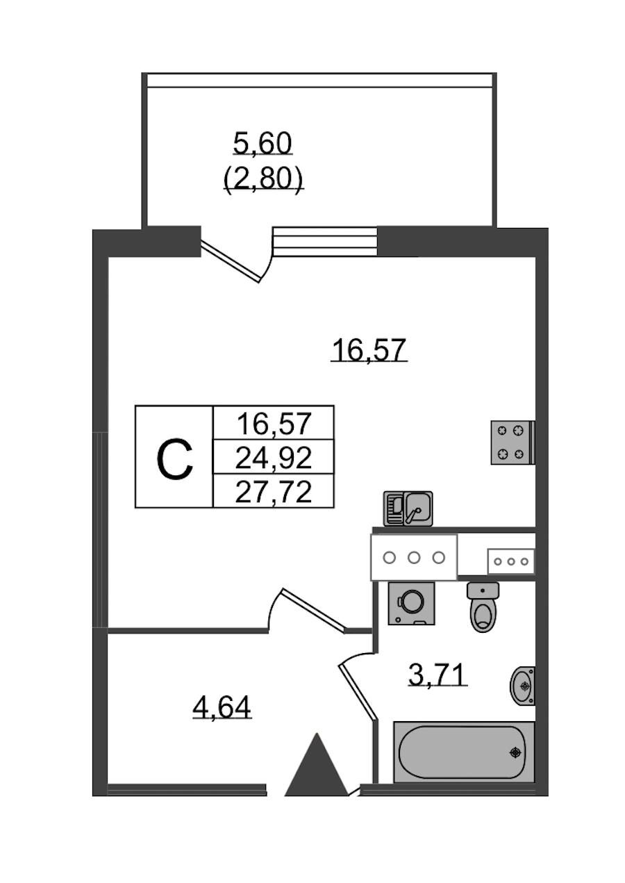 - Площадь27,72 м2