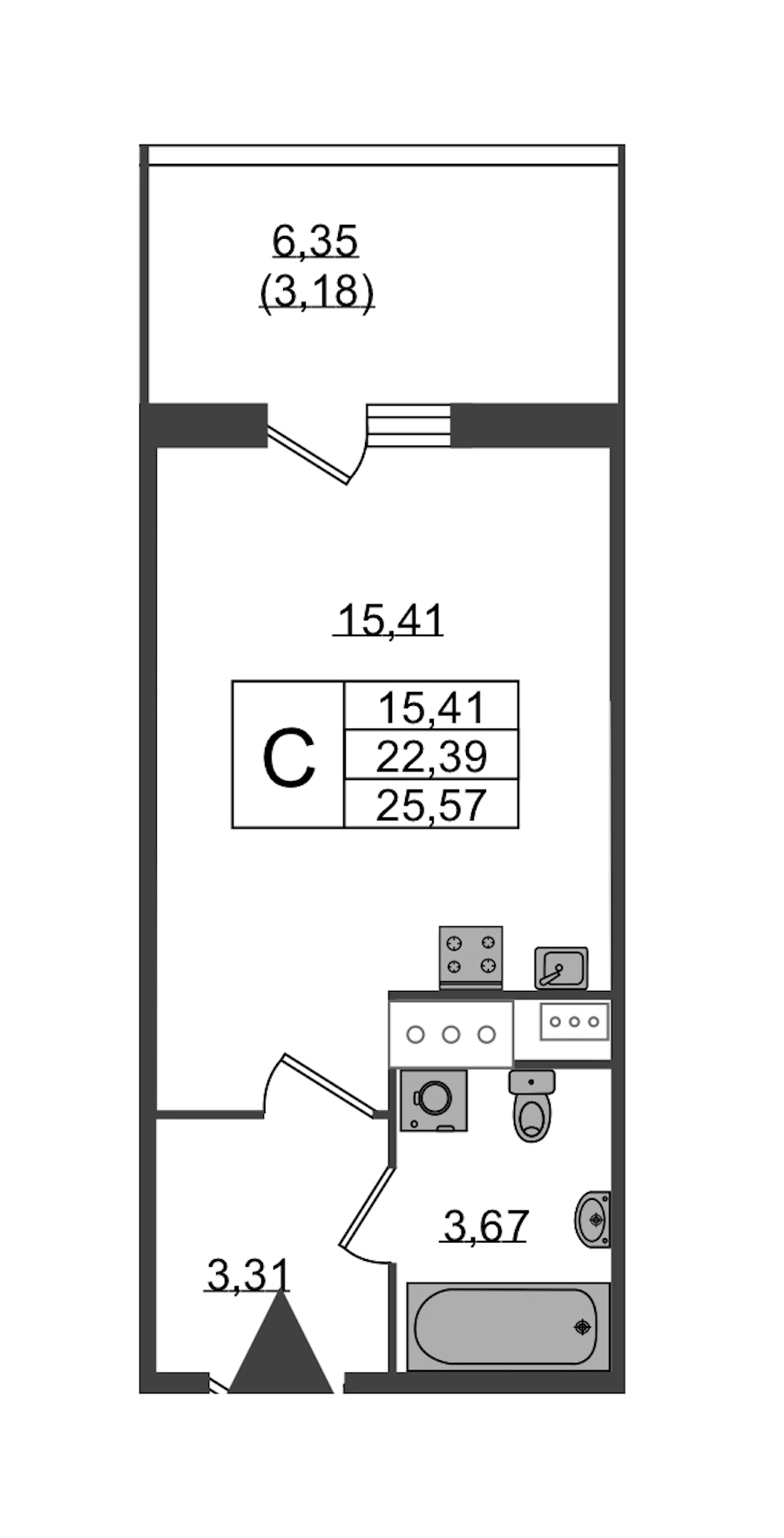 Квартира-студия на 8-ом этаже 25,57 кв.м