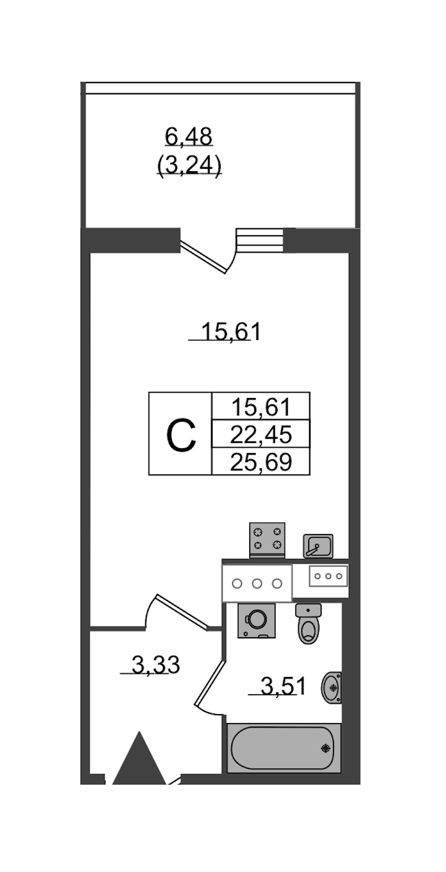- Площадь25,69 м2