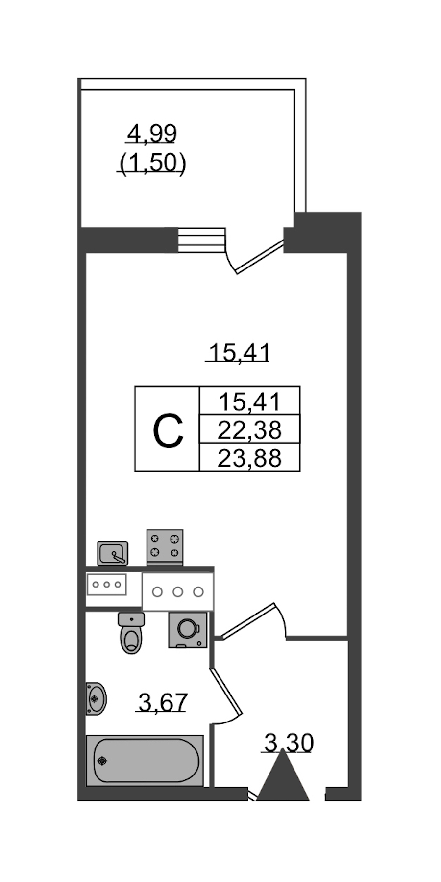 Квартира-студия на 11-ом этаже 26,78 кв.м