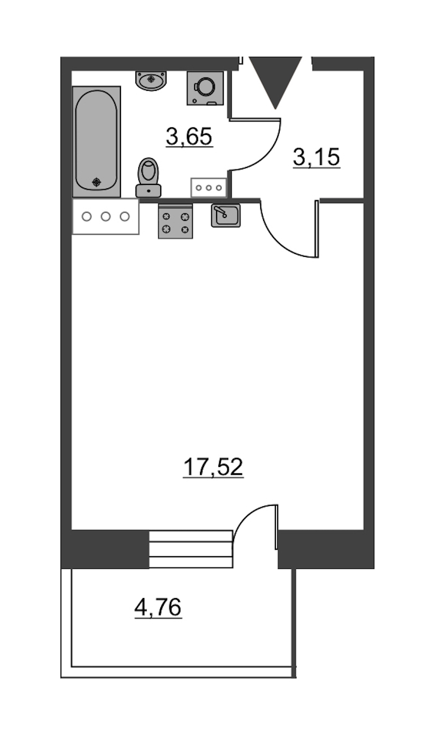 Квартира-студия на 12-ом этаже 25,75 кв.м