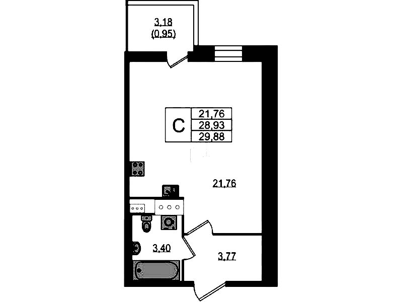 - Площадь29,7 м2