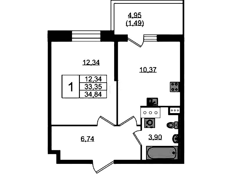 • Площадь34,5 м2