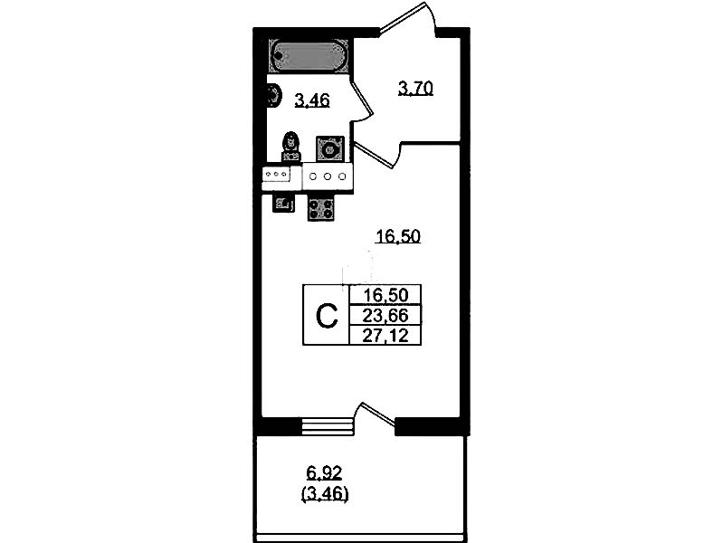 • Высота потолка2,7 м