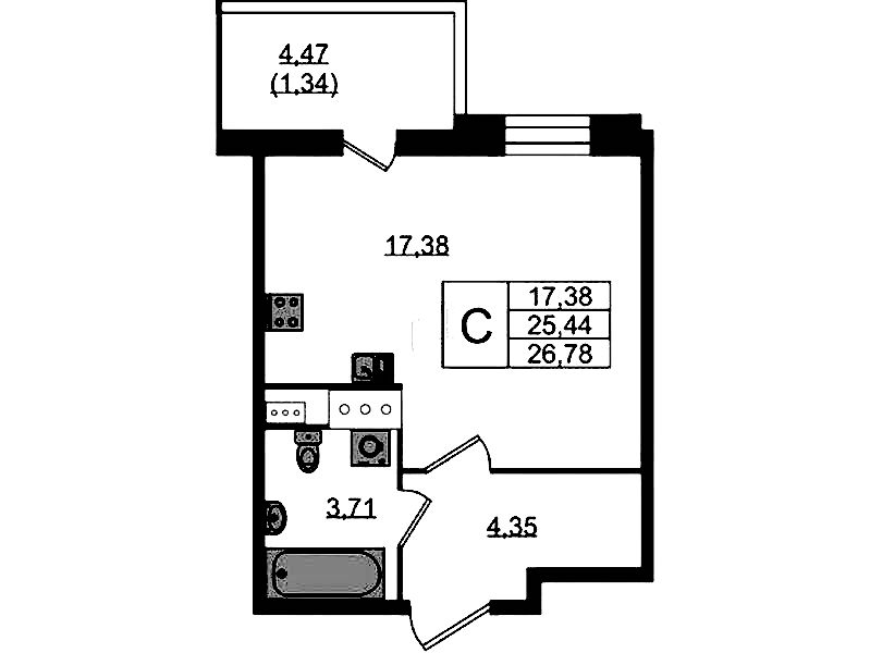 • Площадь26,4 м2