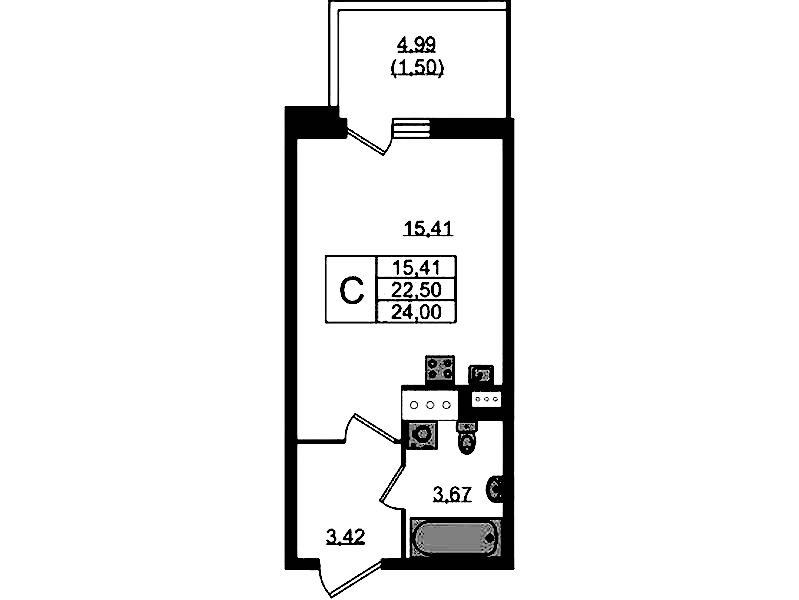 Квартира-студия на 11-ом этаже 23,6 кв.м