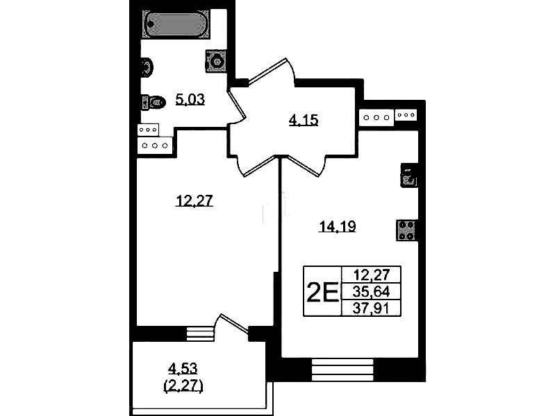 Однокомнатная квартира на 4-ом этаже 37,4 кв.м