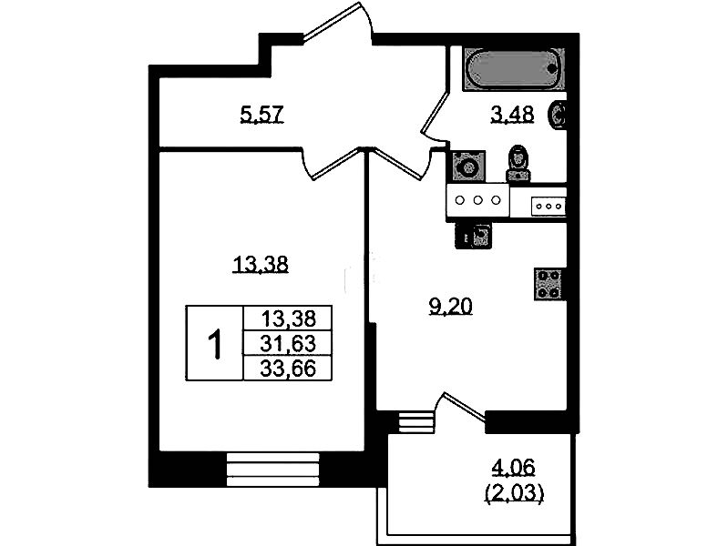 - Площадь33,2 м2