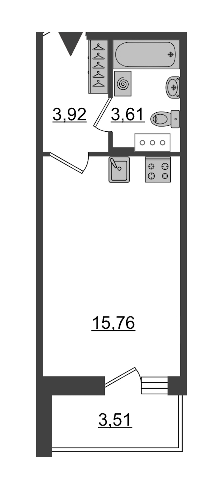 Квартира-студия на 4-ом этаже 24,6 кв.м