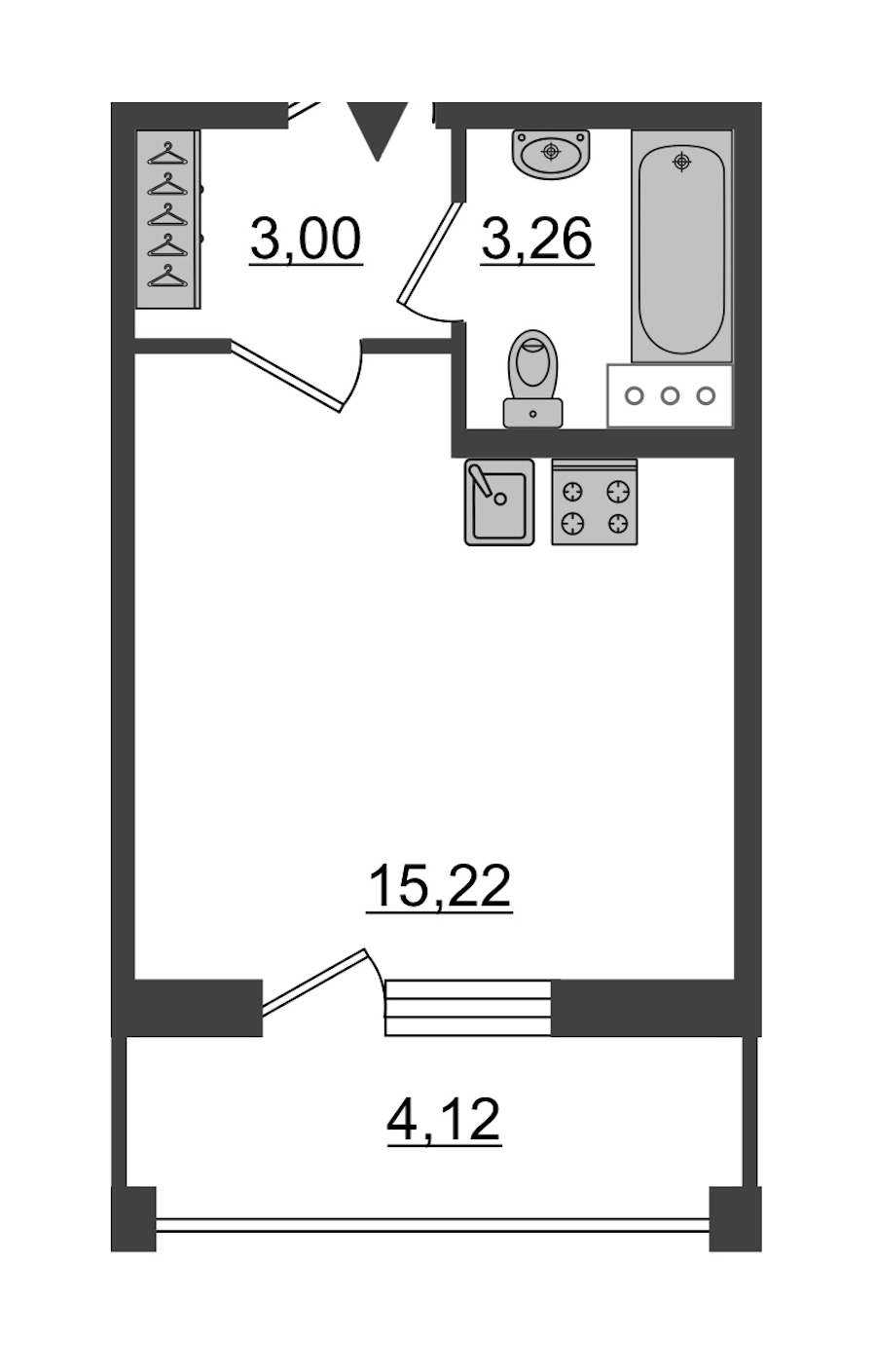 Квартира-студия на 8-ом этаже 24,3 кв.м