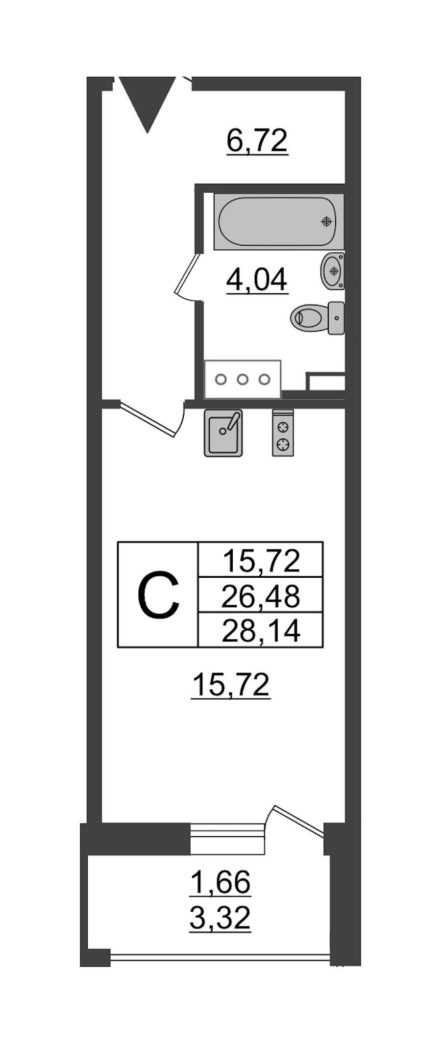Квартира-студия на 13-ом этаже 28,14 кв.м