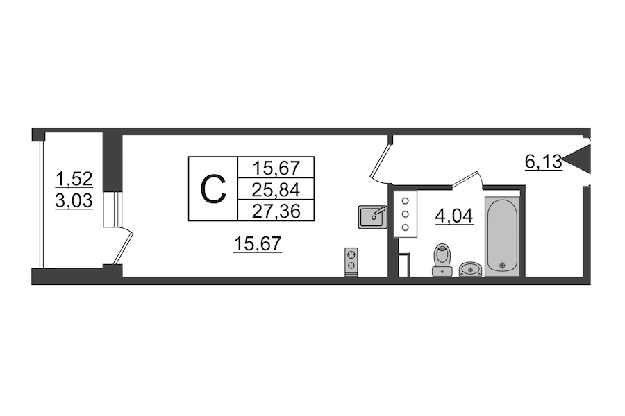 Квартира-студия на 12-ом этаже 27,36 кв.м
