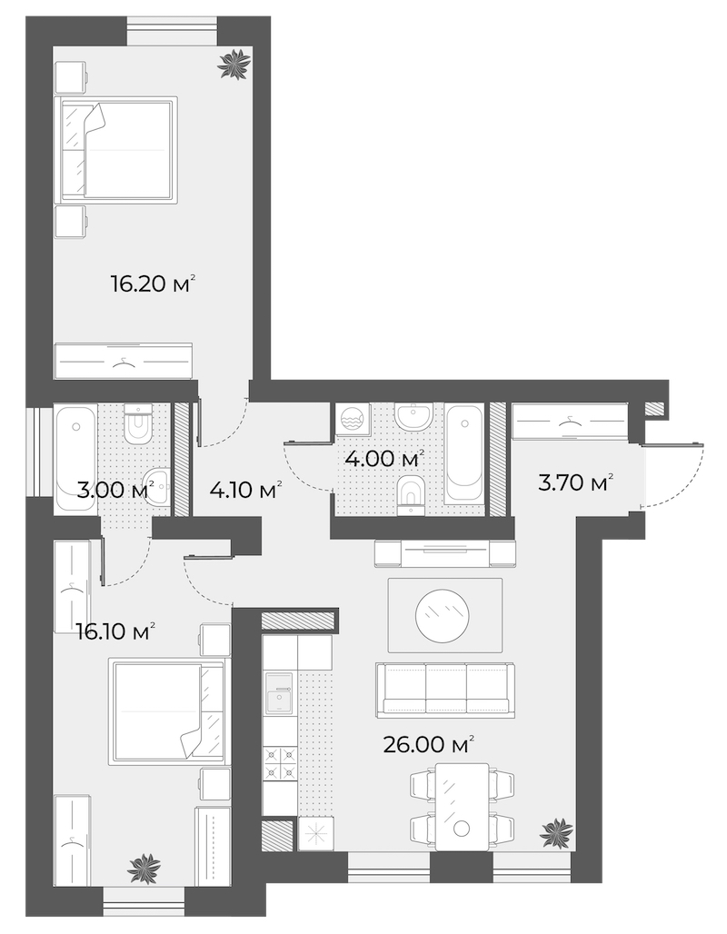 Выше представлены не все варианты квартир, а только часть популярных планировок. Введите данные и получите под ваш запрос планировки, цены, виды из окон и полную информацию по всем подходящим вариантам. 1/5
