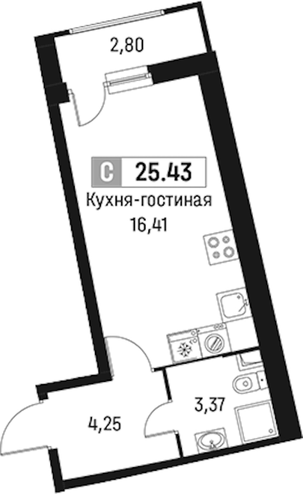 Квартира-студия на 2-ом этаже 25,43 кв.м