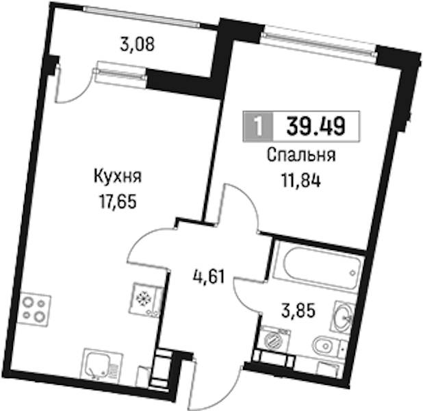 - Площадь39,49 м2