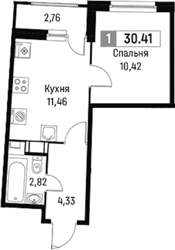 - Площадь30,41 м2