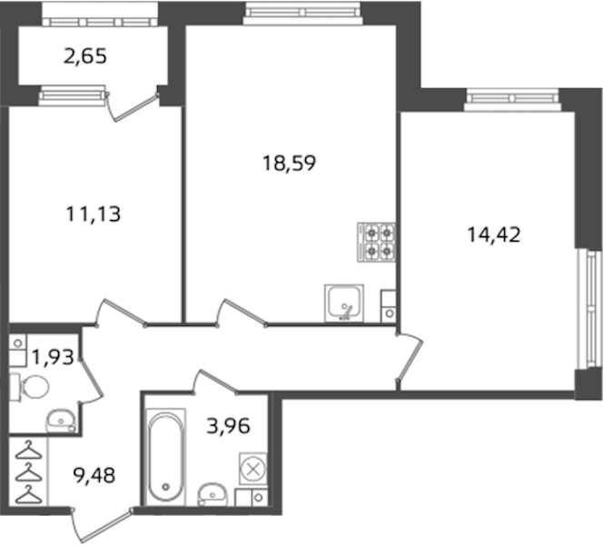 - Площадь59,51 м2