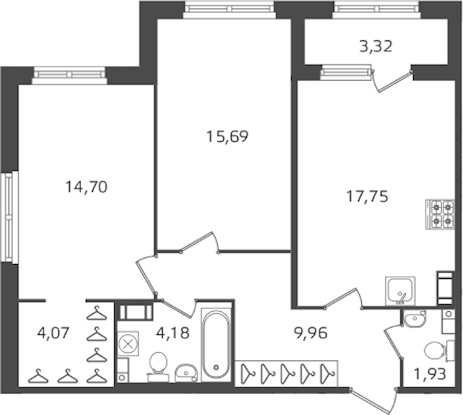 • Площадь кухни17,75 м2