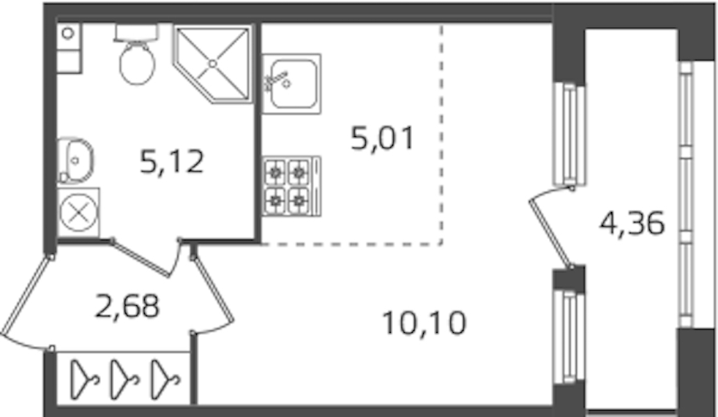 Квартира-студия на 2-ом этаже 22,91 кв.м
