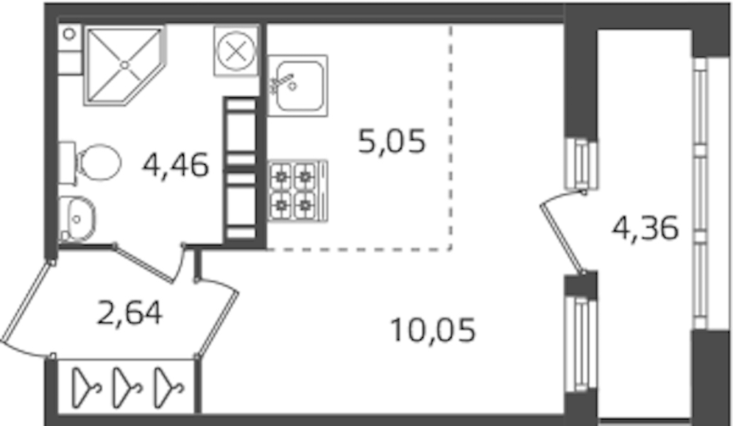 Квартира-студия на 15-ом этаже 22,2 кв.м
