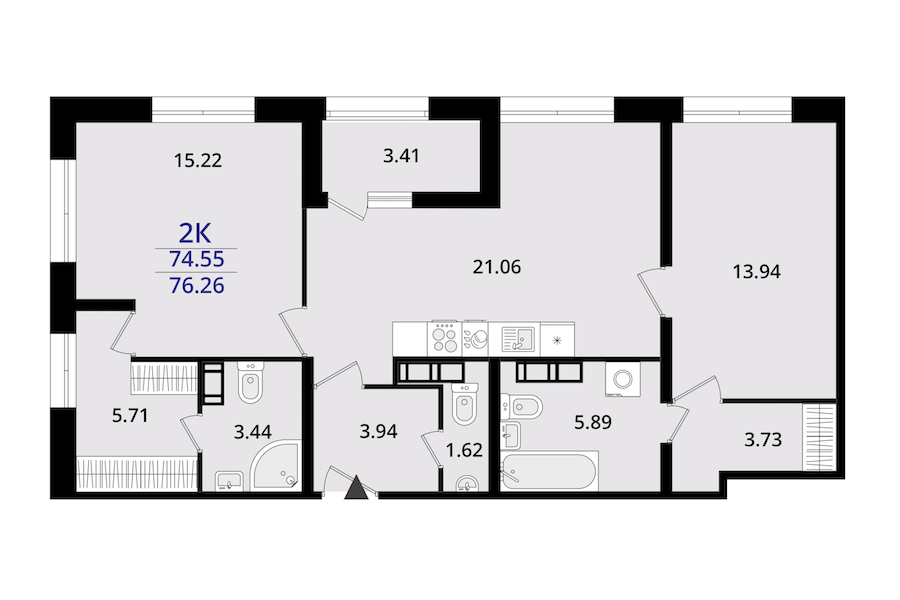 • Площадь76,26 м2