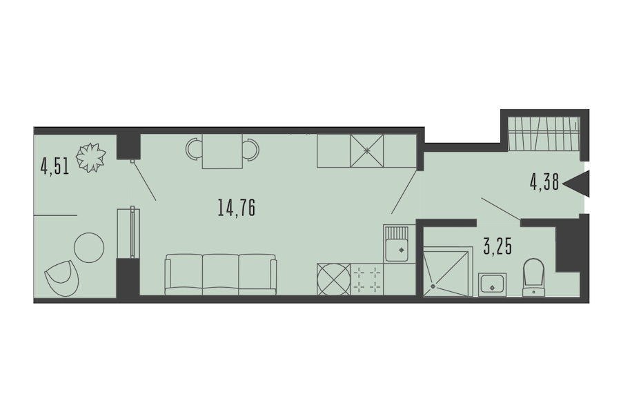 Квартира-студия на 4-ом этаже 23,74 кв.м
