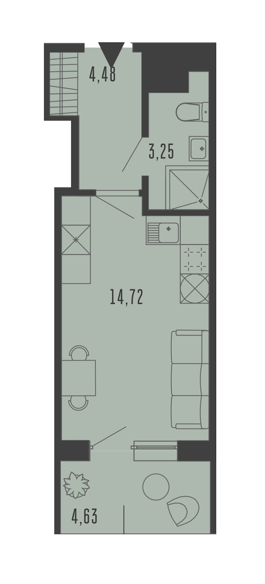 Квартира-студия на 5-ом этаже 23,84 кв.м