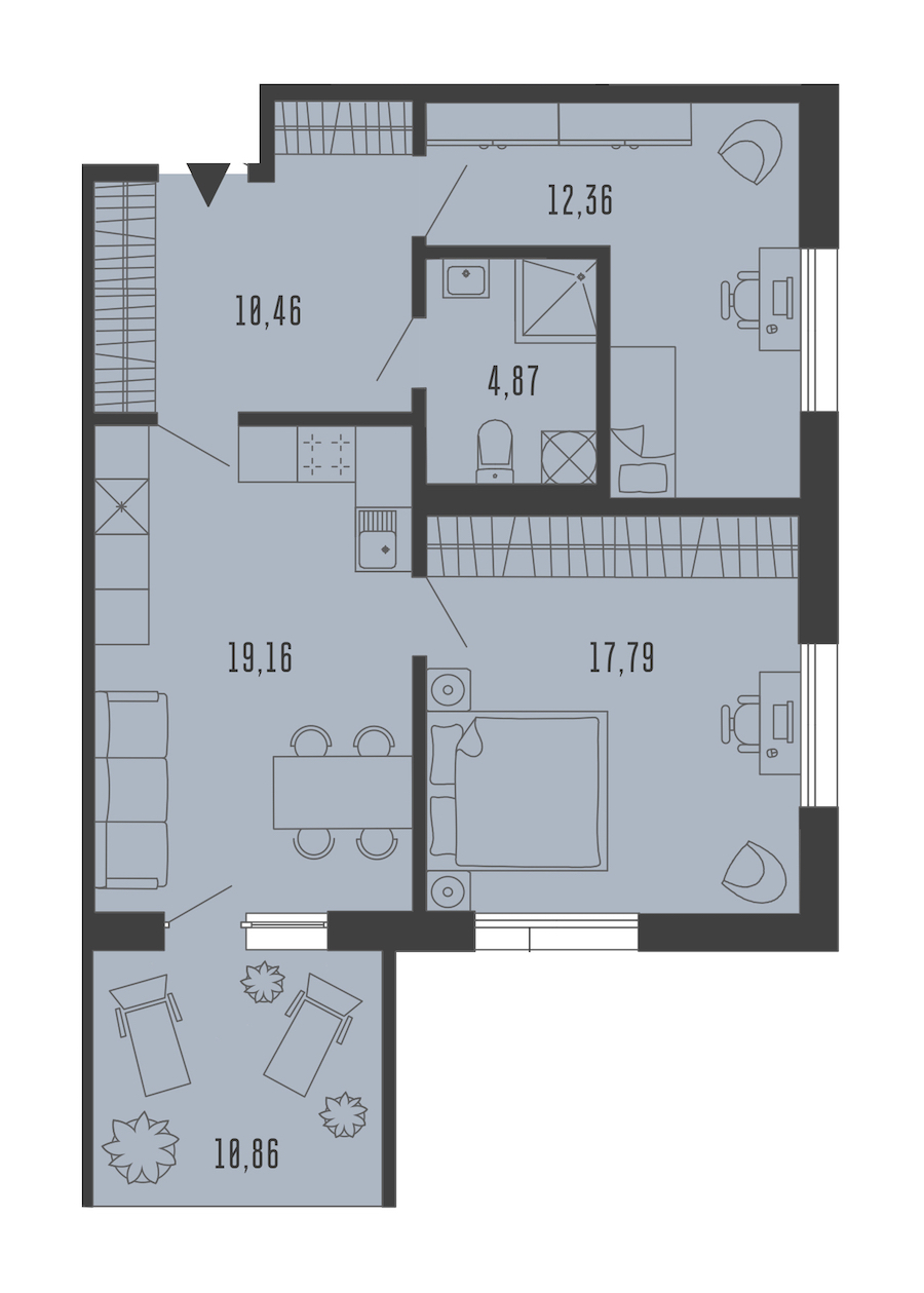 - Площадь кухни19,16 м2