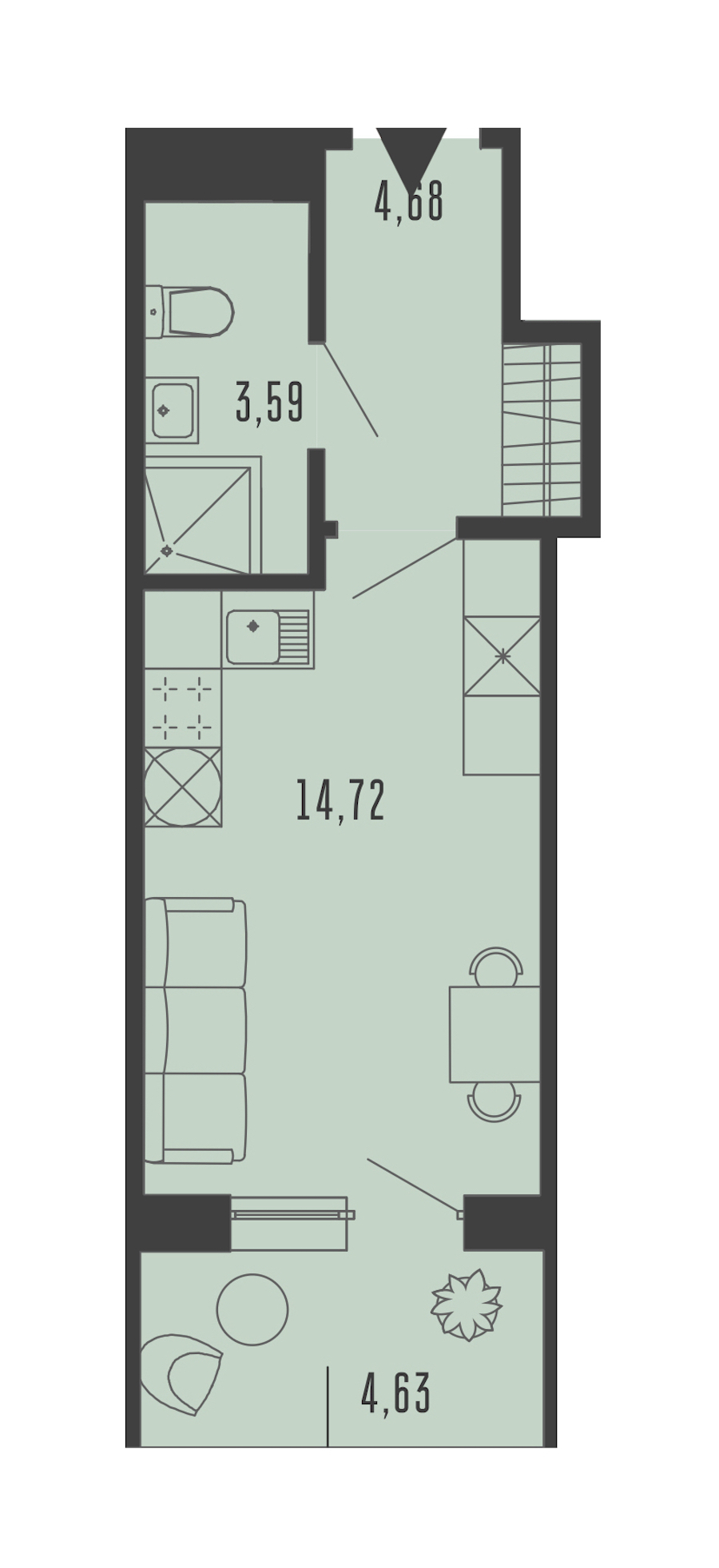 Квартира-студия на 2-ом этаже 24,38 кв.м