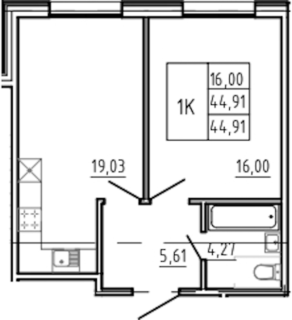 - Площадь44,91 м2