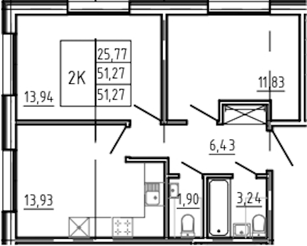 • Площадь51,27 м2