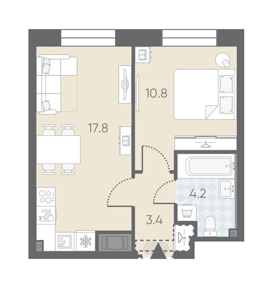 - Площадь кухни17,8 м2