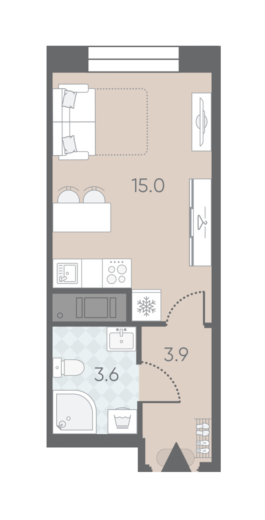 - Площадь22,5 м2